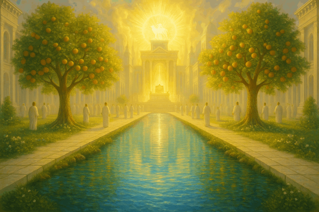 Then the angel showed [the Apostle John] the river of the water of life, bright as crystal, flowing from the throne of God and of the Lamb through the middle of the street of the city; also, on either side of the river, the tree of life with its twelve kinds of fruit, yielding its fruit each month. The leaves of the tree were for the healing of the nations. No longer will there be anything accursed, but the throne of God and of the Lamb will be in it, and his servants will worship him. They will see his face, and his name will be on their foreheads. And night will be no more. They will need no light of lamp or sun, for the Lord God will be their light, and they will reign forever and ever.Revelation 22:1–5 (emphasis added)