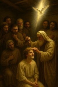 After Jesus’s resurrection, He appears to His disciples and others in a different form–an eternal Body–and promises He will send His own Spirit to dwell inside them. Fifty days (Pentecost) following Passover, after the eternal Lamb’s blood was shed, Peter addresses those gathered with him. While he speaks, the promised Holy Spirit fills them all and gives two visible signs: